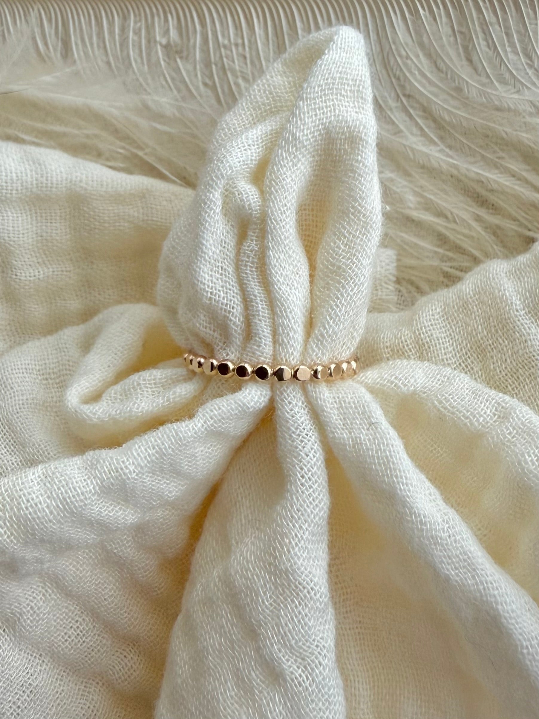 A dainty yet eye-catching piece, this beaded dot ring features a delicate band with a subtle dotted texture all the way around. Measuring approximately 2mm wide, it’s perfect for stacking with other rings or wearing alone for a minimalist touch.
