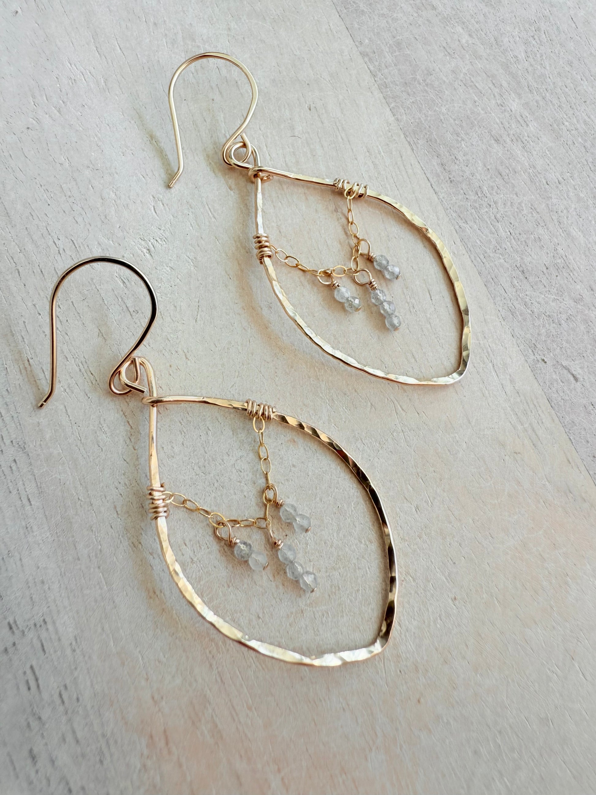 Dainty Labradorite Petal Hoops