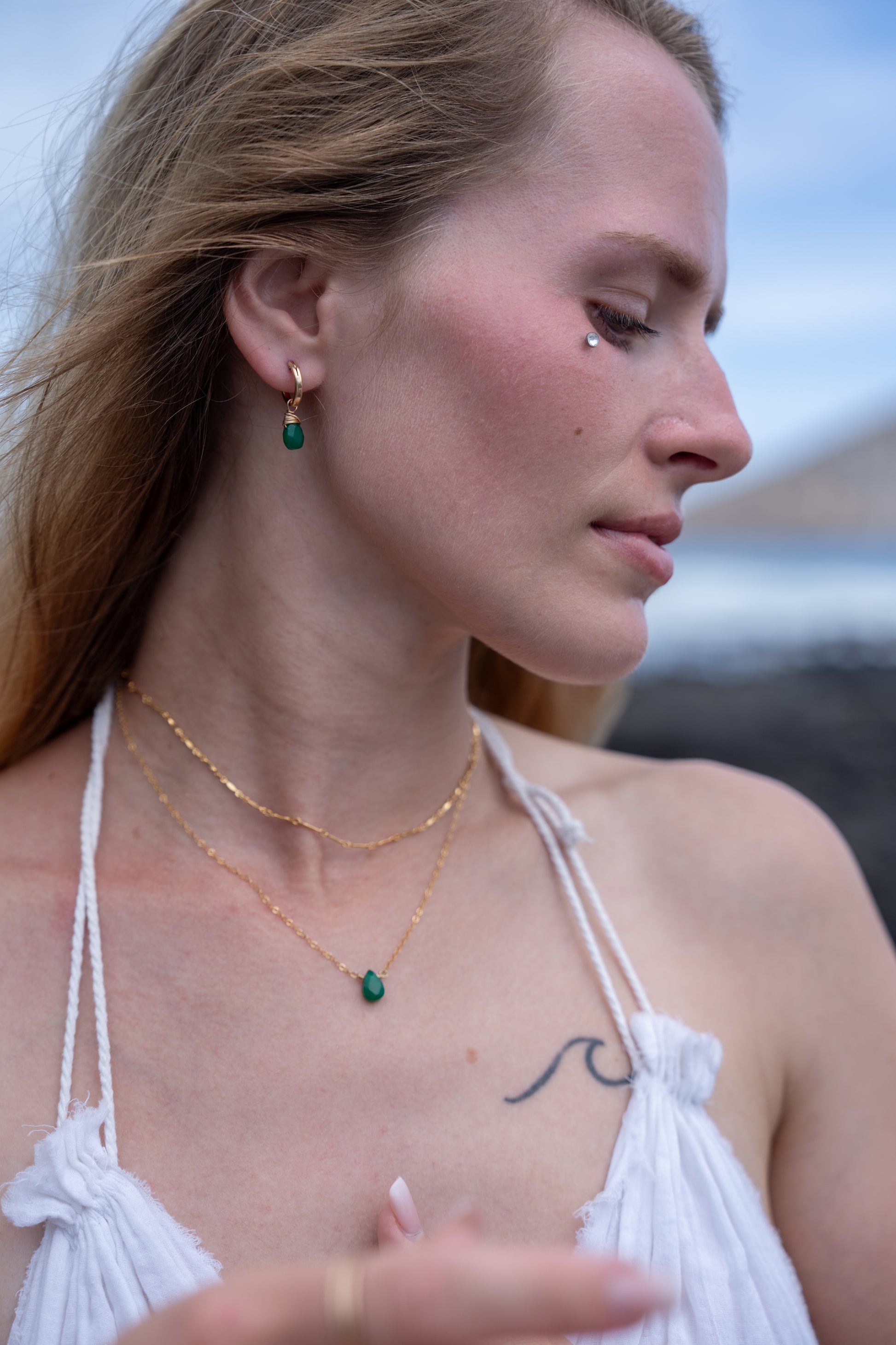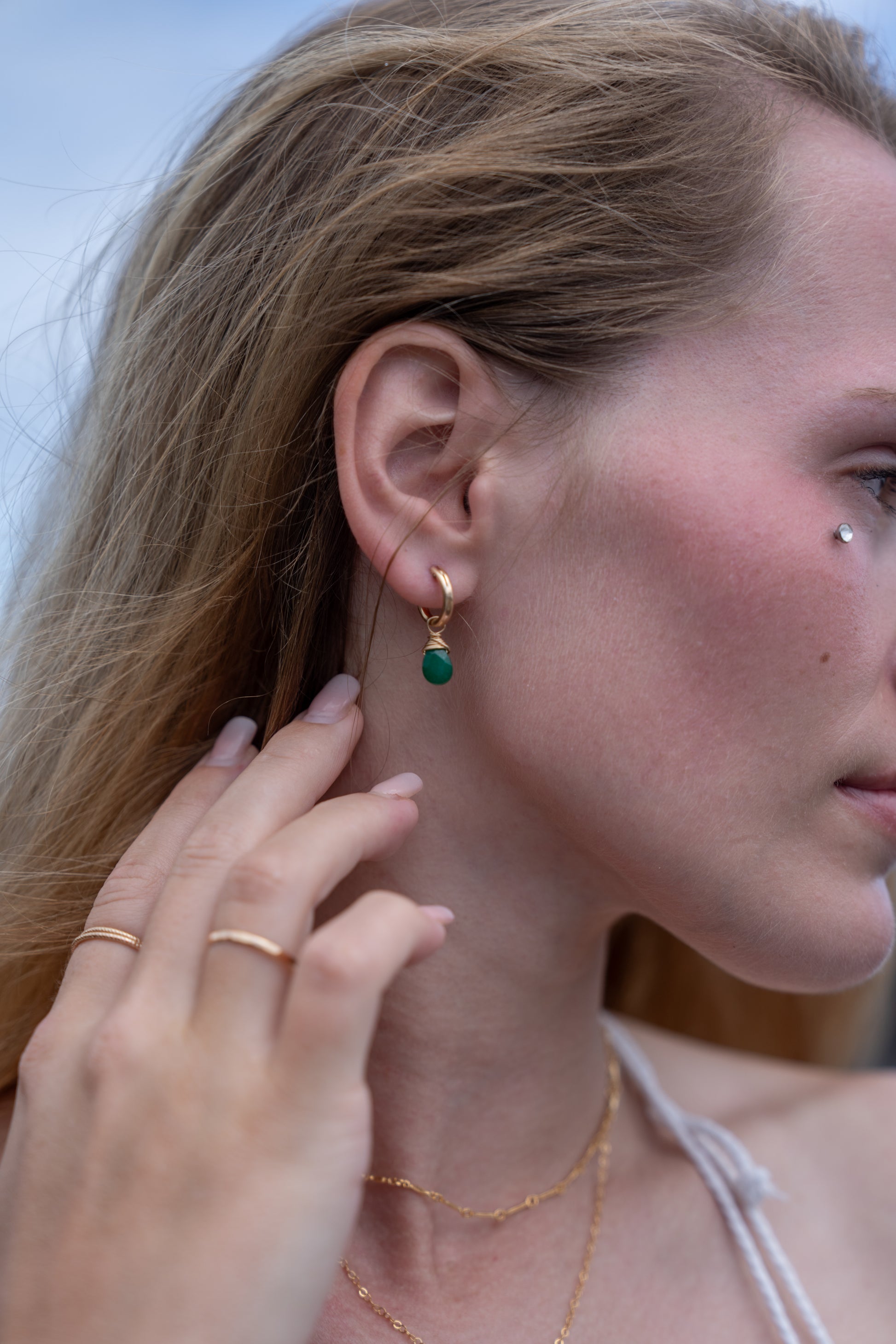 Green Jade Faceted Tear Drop Huggies