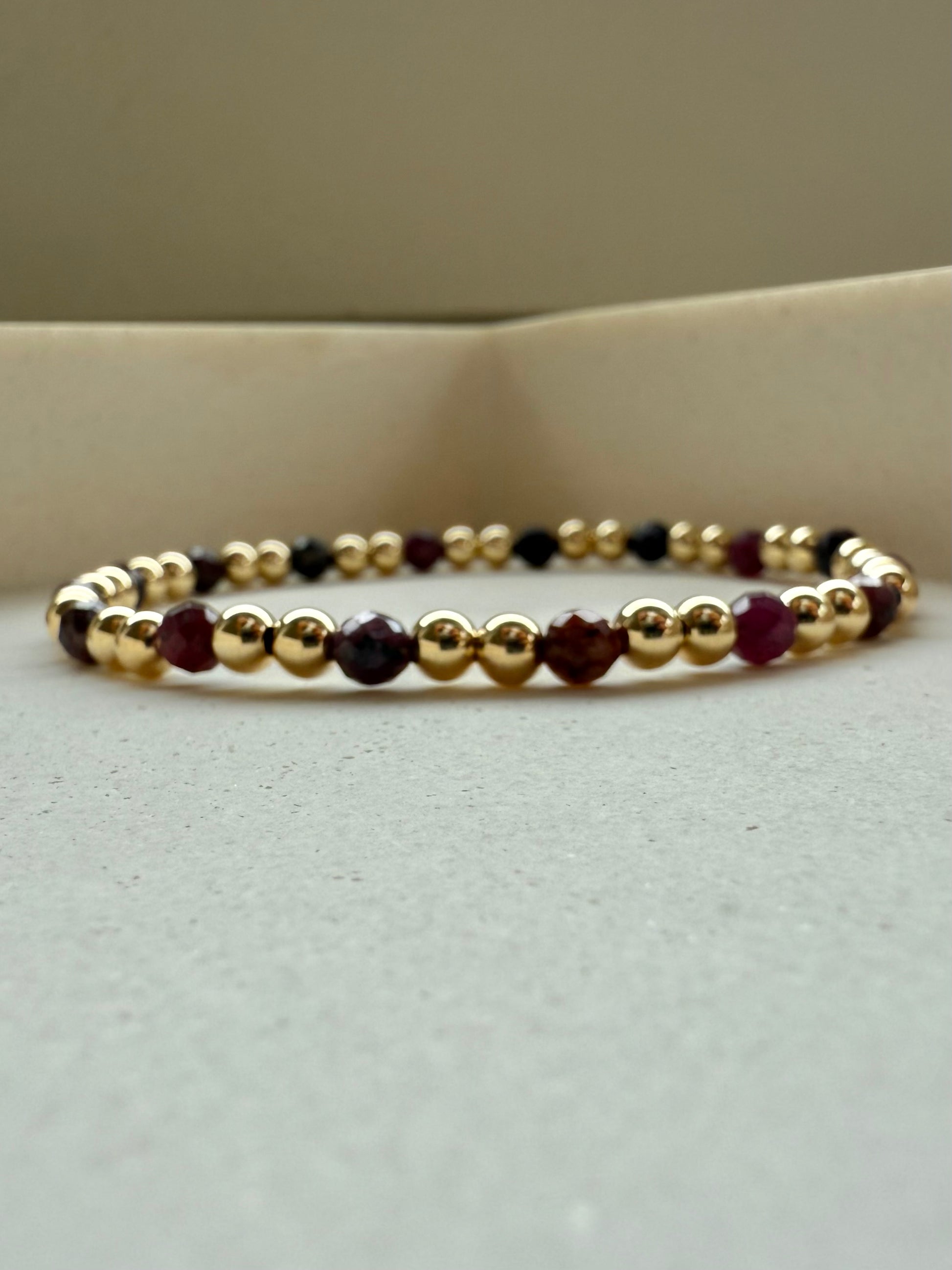 Garnet (January) – Deep red stone symbolizing protection, love, and strength.