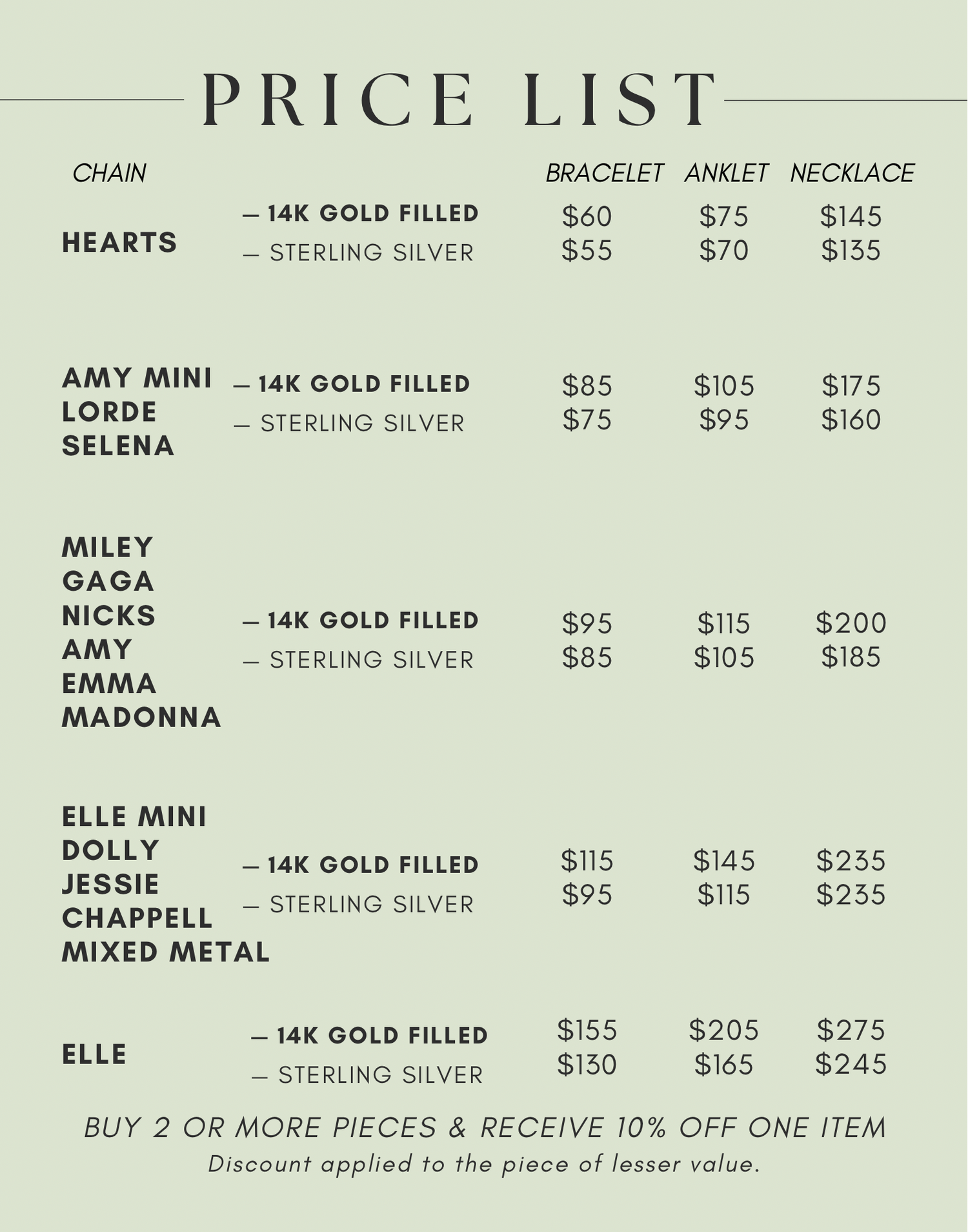 Click here for more details about 14k Gold Filled & Sterling Silver. If you would like solid gold please reach out to us and we can try to get it for you!