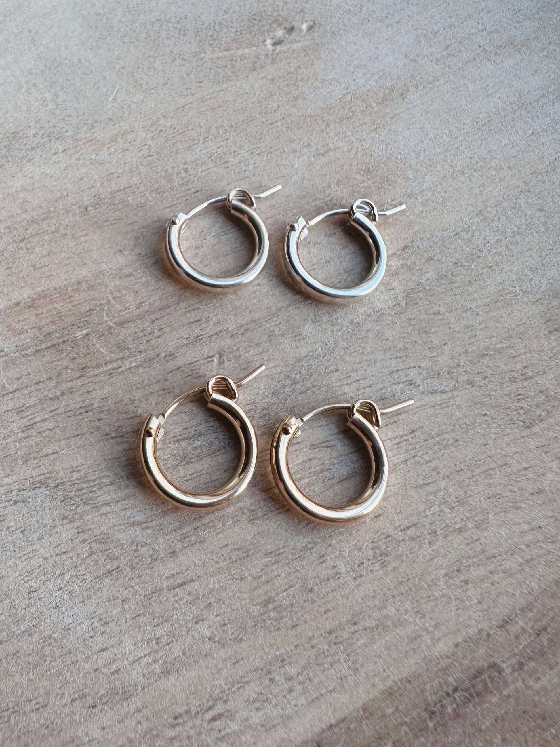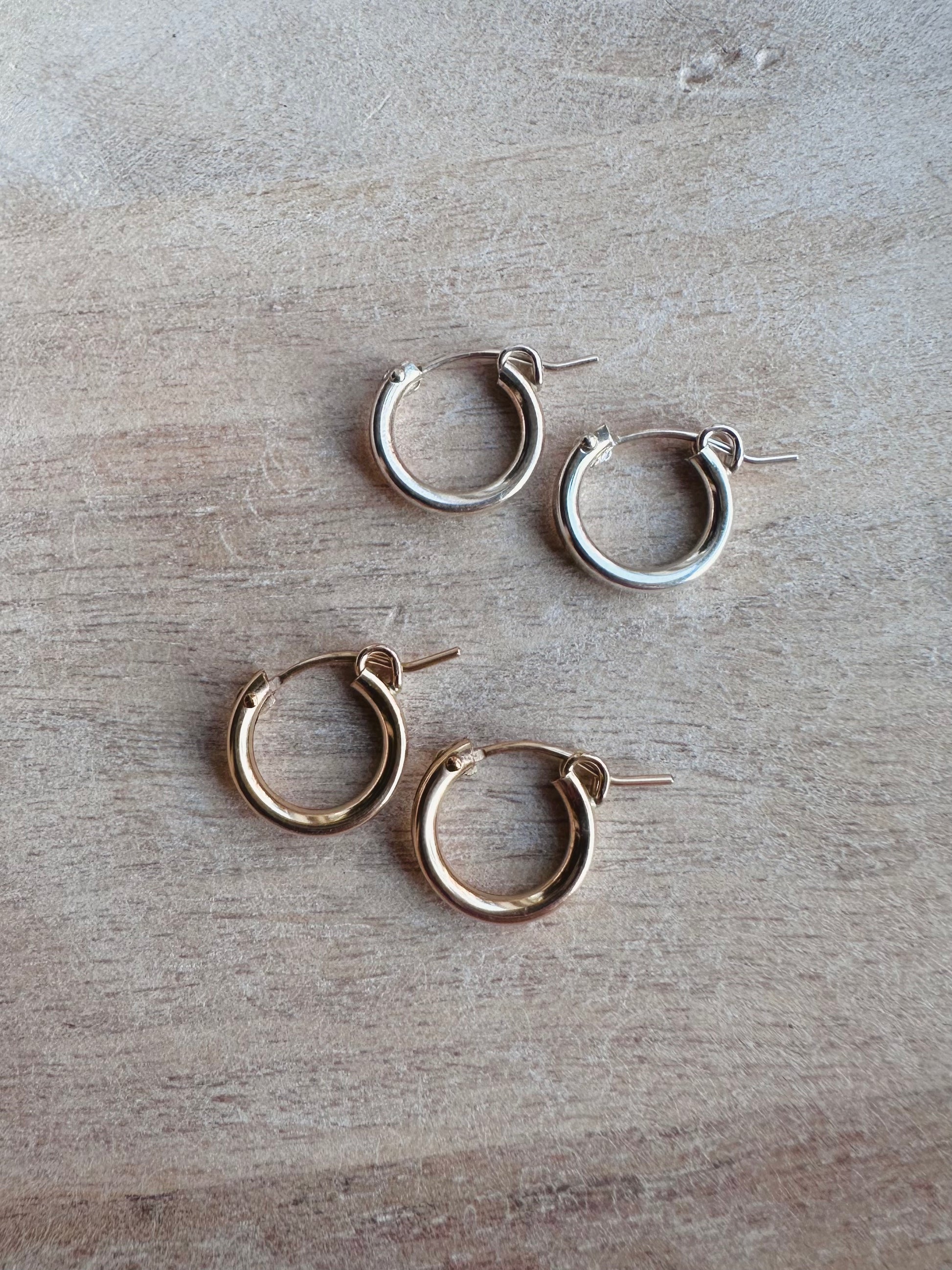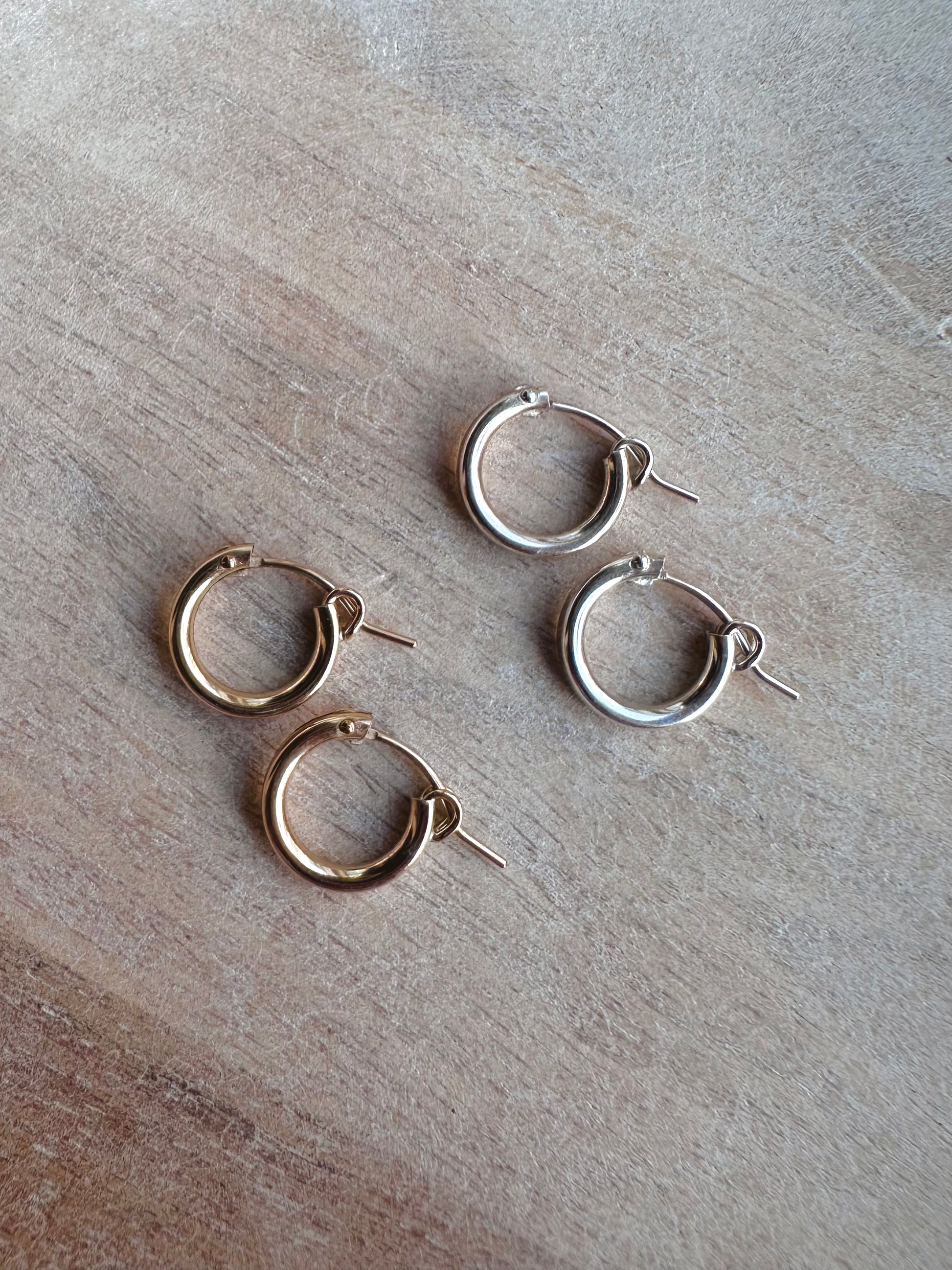 The ultimate everyday hoops — with endless styling potential. Choose between our small (13mm) or big (18mm) huggies and customize them with interchangeable charms that reflect your mood or style. Wear them solo, with matching charms, or mix things up asymmetrically. It’s your look, your way.