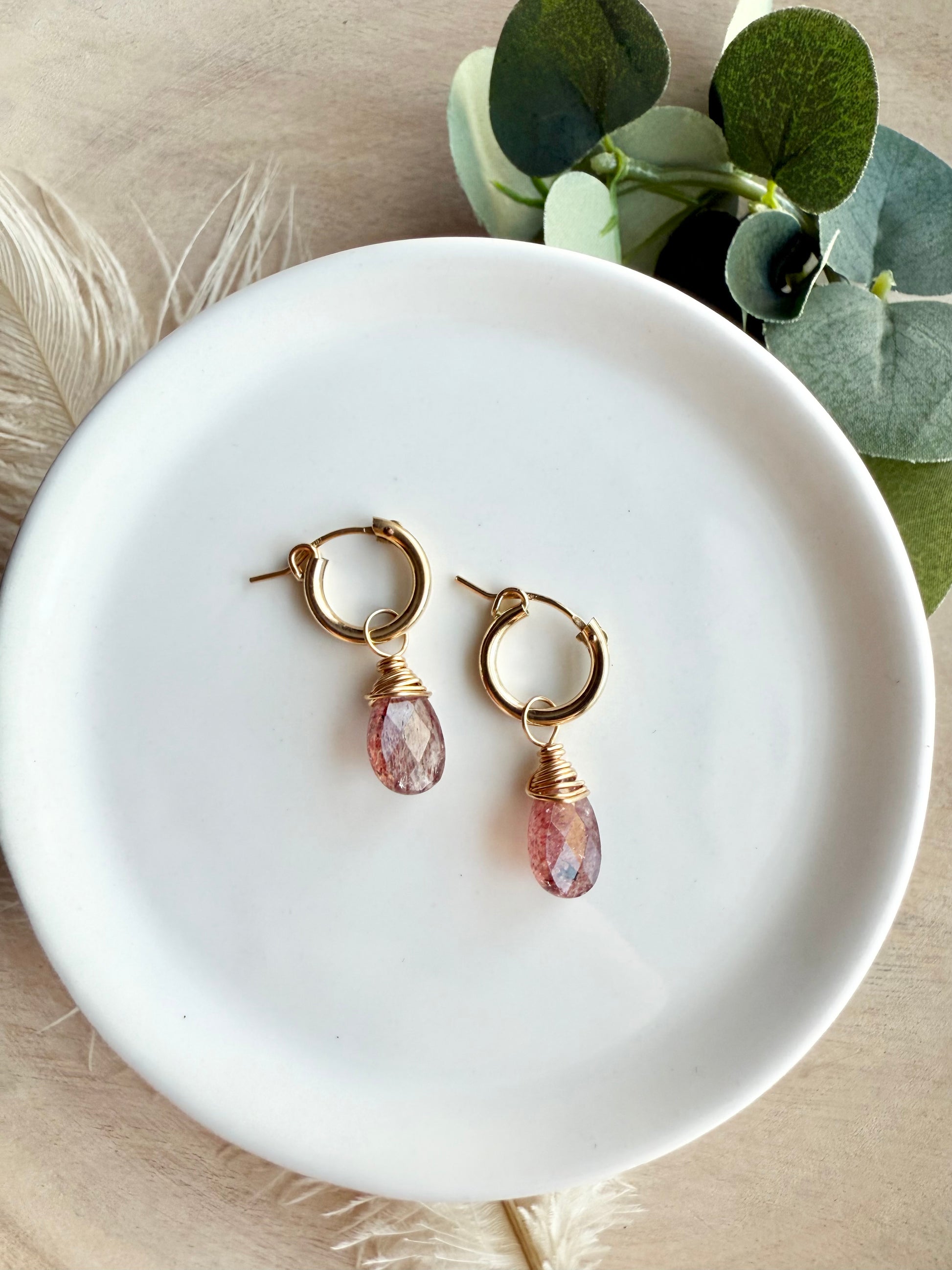 Strawberry Quartz Faceted Tear Drop Huggies