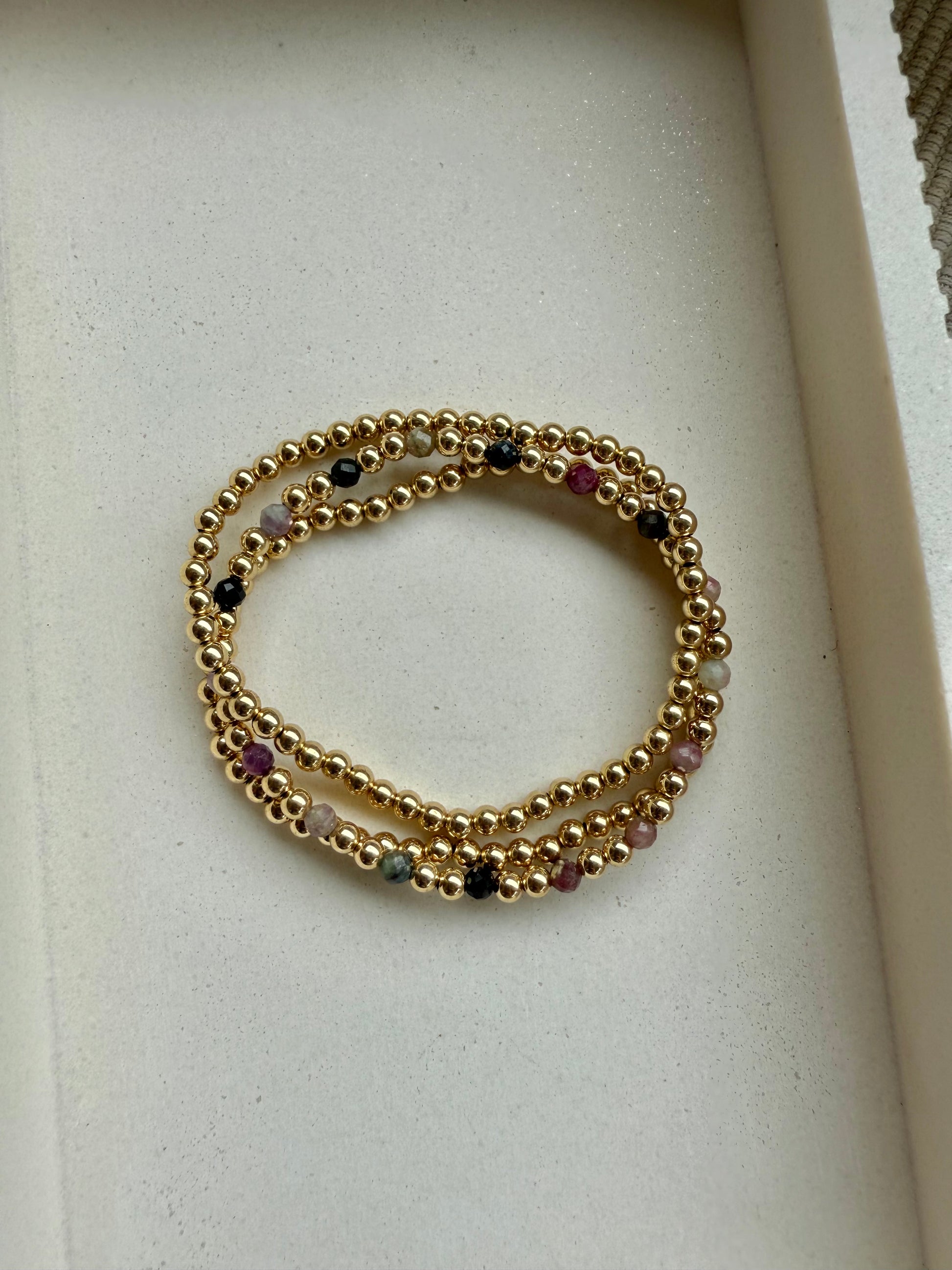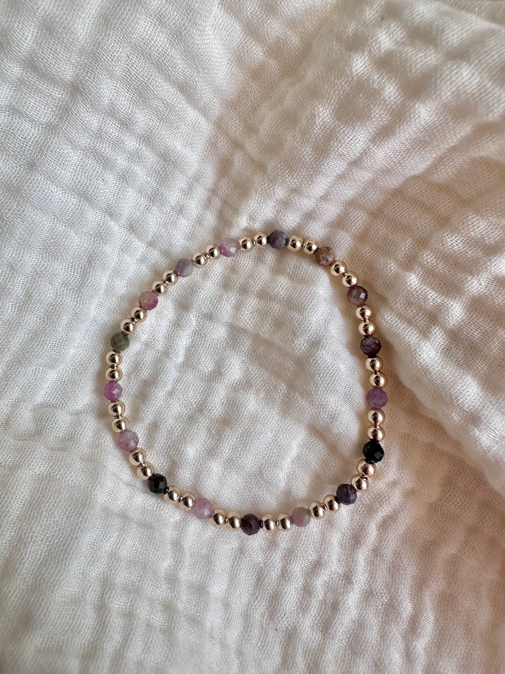 Our tourmaline bracelet is a mixture of 4mm beads and natural tourmaline faceted stones.