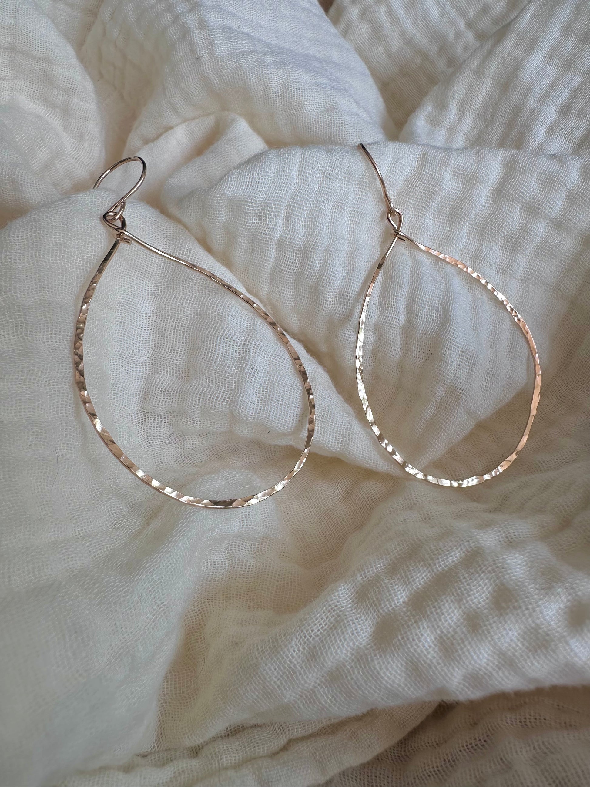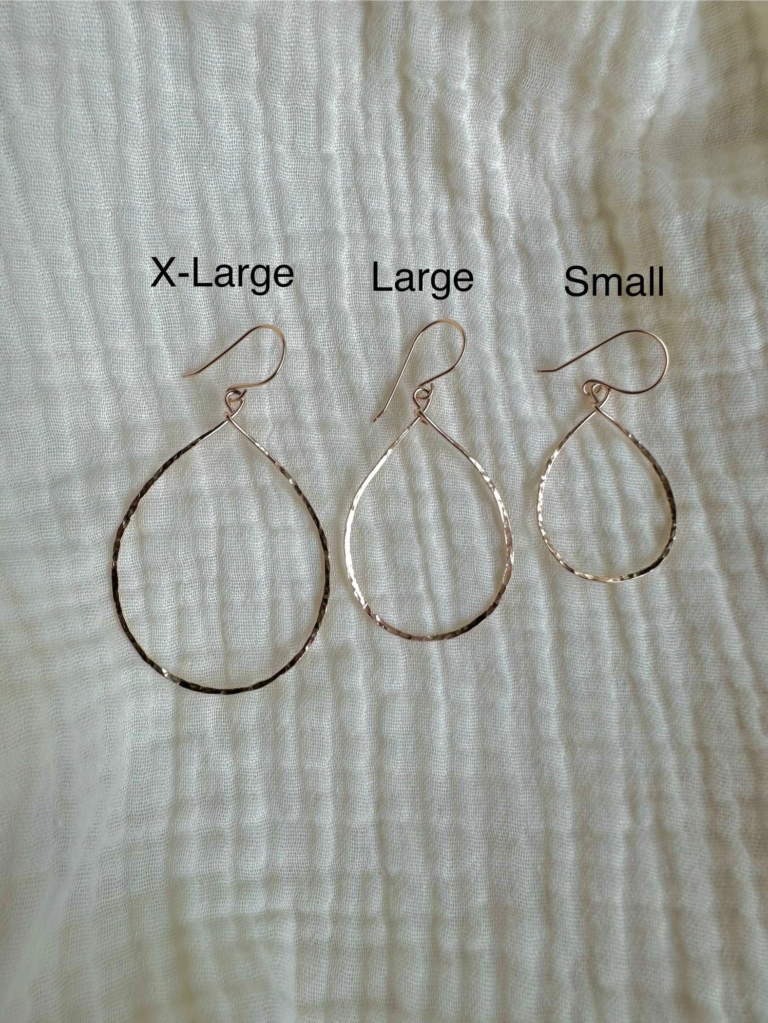 These minimalistic earrings are completely hand made from the earring hooks to the teardrop shape. Comes in your choice of 14k Gold Filled or Sterling Silver.